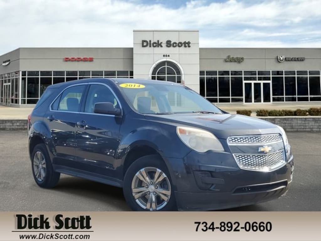 Dick Scott CDJR is pumped up to offer this terrific-looking 2014 Chevrolet Equinox in Ashen Gray Metallic This vehicle comes with the following Equipment Group 1LS (6 Speaker Audio System Feature and Manual Climate Control), 17" Aluminum Wheels, 3.23 Axle Ratio, 4-Wheel Disc Brakes, 6 Speakers, ABS brakes, Air Conditioning, Alloy wheels, AM/FM radio: SiriusXM, Brake assist, Bumpers: body-color, CD player, Cloth Seat Trim, Compass, Delay-off headlights, Deluxe Front Bucket Seats, Driver door bin, Driver vanity mirror, Dual front impact airbags, Dual front side impact airbags, Electronic Stability Control, Emergency communication system: OnStar Directions & Connections, Four wheel independent suspension, Front anti-roll bar, Front Bucket Seats, Front Center Armrest, Front License Plate Bracket, Front reading lights, Fully automatic headlights, Illuminated entry, Low tire pressure warning, Occupant sensing airbag, Outside temperature display, Overhead airbag, Panic alarm, Passenger door bin, Passenger vanity mirror, Power door mirrors, Power driver seat, Power steering, Power windows, Radio data system, Radio: AM/FM Stereo w/CD Player & MP3 Capability, Rear anti-roll bar, Rear seat center armrest, Rear window defroster, Rear window wiper, Remote keyless entry, Security system, SiriusXM Satellite Radio, Speed control, Speed-sensing steering, Split folding rear seat, Spoiler, Steering wheel mounted audio controls, Tachometer, Telescoping steering wheel, Tilt steering wheel, Traction control, Trip computer, and Variably intermittent wipers;