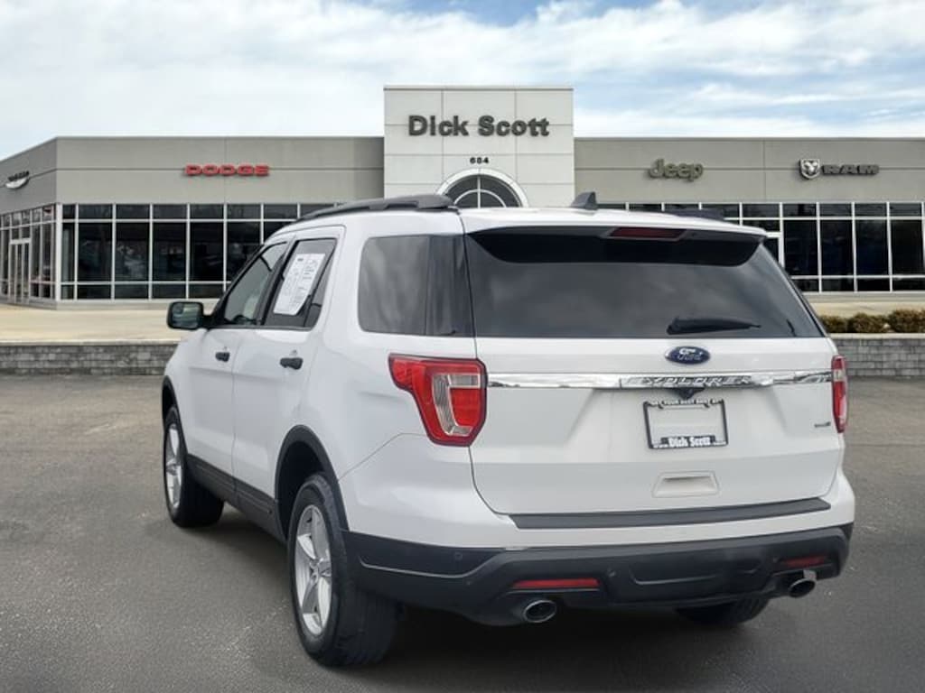 Dick Scott CDJR is excited to offer this gorgeous 2018 Ford Explorer in Oxford White This vehicle comes with the following Equipment Group 100A, 4WD, Air Conditioning, Power driver seat, Remote keyless entry, 18" Painted Aluminum Wheels, 3.65 Axle Ratio, 3rd row seats: split-bench, 4-Wheel Disc Brakes, 6 Speakers, ABS brakes, Alloy wheels, AM/FM radio, AM/FM Stereo, Brake assist, Bumpers: body-color, Cloth Bucket Seats, Compass, Delay-off headlights, Driver door bin, Driver vanity mirror, Dual front impact airbags, Dual front side impact airbags, Electronic Stability Control, Emergency communication system: 911 Assist, Exterior Parking Camera Rear, Four wheel independent suspension, Front anti-roll bar, Front Bucket Seats, Front Center Armrest, Front License Plate Bracket, Front reading lights, Fully automatic headlights, Heated door mirrors, Illuminated entry, Knee airbag, Low tire pressure warning, Occupant sensing airbag, Outside temperature display, Overhead airbag, Overhead console, Panic alarm, Passenger door bin, Passenger vanity mirror, Power door mirrors, Power steering, Power windows, Rear air conditioning, Rear anti-roll bar, Rear reading lights, Rear seat center armrest, Rear window defroster, Rear window wiper, Roof rack: rails only, SiriusXM Satellite Radio, Speed control, Speed-sensing steering, Speed-Sensitive Wipers, Split folding rear seat, Spoiler, Steering wheel mounted audio controls, SYNC Communication & Entertainment System, Tachometer, Telescoping steering wheel, Tilt steering wheel, Traction control, Trip computer, and Variably intermittent wipers; **4X4**, 4WD, Air Conditioning, Equipment Group 100A, Power driver seat, Remote keyless entry.
