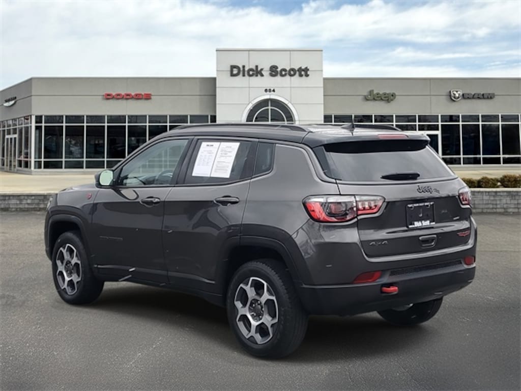 Dick Scott CDJR is excited to offer this beautiful-looking 2022 Jeep Compass in Granite Crystal Metallic Clearcoat This vehicle comes with the following Quick Order Package 2GE, Trailhawk Convenience Group (115V Auxiliary Power Outlet, 2nd Row USB Type A/C Charge Only, Heated Front Seats, Leather Wrapped Steering Wheel, Power 2-Way Driver Lumbar Adjust, Power Adjust 8-Way Driver Seat, Remote Start System, Reversible Carpet/Vinyl Cargo Mat, Vehicle Information Center, and Windshield Wiper De-Icer), 4WD, 10.1" Touchscreen Display, 4-Wheel Disc Brakes, 4.334 Axle Ratio, 6 Speakers, ABS brakes, Air Conditioning, Alloy wheels, AM/FM radio: SiriusXM, Anti-whiplash front head restraints, Auto High-beam Headlights, Auto-dimming Rear-View mirror, Automatic temperature control, Brake assist, Bumpers: body-color, Compass, Delay-off headlights, Disassociated Touchscreen Display, Driver door bin, Driver vanity mirror, Dual front impact airbags, Dual front side impact airbags, Electronic Stability Control, Emergency communication system: SiriusXM Guardian, Four wheel independent suspension, Front anti-roll bar, Front Bucket Seats, Front Center Armrest w/Storage, Front dual zone A/C, Front fog lights, Front License Plate Bracket, Front reading lights, Fully automatic headlights, Global Telematics Box Module (TBM), Heated door mirrors, Illuminated entry, Knee airbag, Leather Shift Knob, Low tire pressure warning, Occupant sensing airbag, Outside temperature display, Overhead airbag, Overhead console, Panic alarm, ParkView Rear Back-Up Camera, Passenger door bin, Passenger vanity mirror, Power door mirrors, Power steering, Power windows, Premium Cloth/Leather Trim Bucket Seats, Radio: Uconnect 5 w/10.1" Display, Rain sensing wipers, Rear anti-roll bar, Rear seat center armrest, Rear window defroster, Rear window wiper, Remote keyless entry, Roof rack: rails only, Security system, Speed control, Split folding rear seat, Spoiler, Steering wheel mounted audio controls, Tachometer, Telescoping steering wheel, Tilt steering wheel, Traction control, Trip computer, Turn signal indicator mirrors, Variably intermittent wipers, and Wheels: 17" x 6.5" Painted Diamond Cut Aluminum; 4WD.