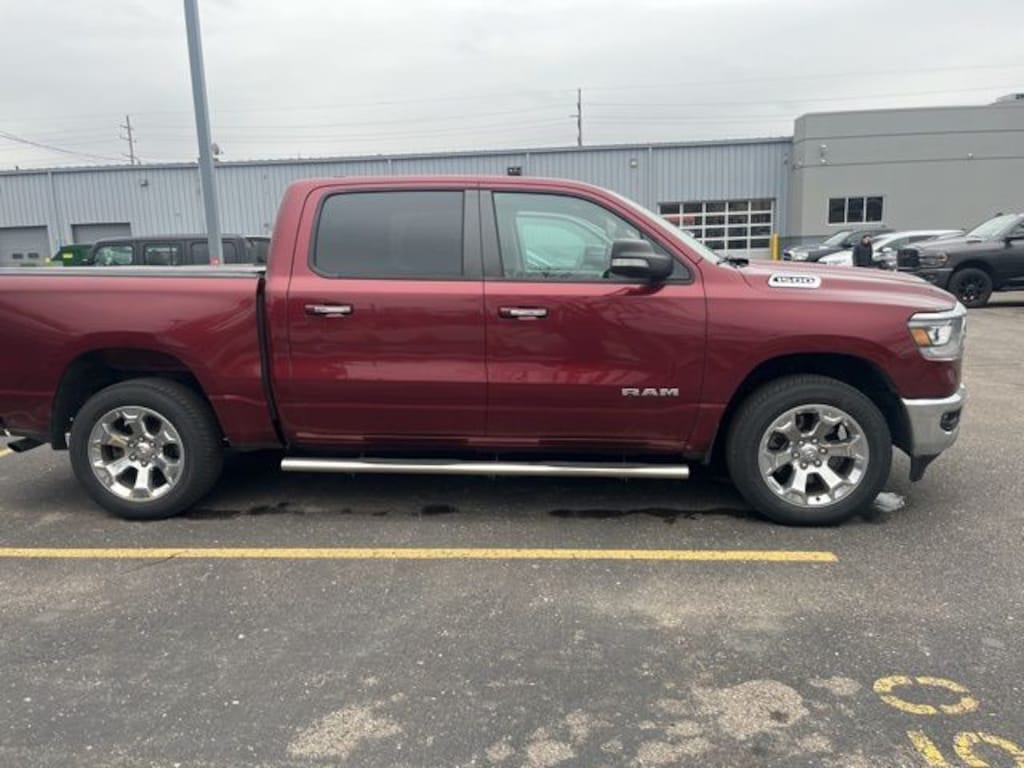 Dick Scott CDJR is very proud to offer this wonderful-looking 2020 Ram 1500 in Delmonico Red Pearlcoat This vehicle comes with the following Big Horn Level 2 Equipment Group (115V Auxiliary Power Outlet, 115V Auxiliary Rear Power Outlet, 2 USB Full Function/Charge Only Media Hub, 2nd Row In Floor Storage Bins, 400W Inverter, Air Conditioning ATC w/Dual Zone Control, Auto-Dimming Rear-View Mirror, Big Horn IP Badge, Black Premium Power Mirrors, Class IV Receiver Hitch, Dampened Tailgate, Foam Bottle Insert (Door Trim Panel), Glove Box Lamp, Heated Front Seats, Heated Steering Wheel, ParkSense Front/Rear Park Assist w/Stop, Power 4-Way Driver Lumbar Adjust, Power 8-Way Driver Seat, Power Adjustable Pedals, Radio: Uconnect 4 w/8.4" Display, Rear Dome w/On/Off Switch Lamp, Rear Power Sliding Window, Rear Window Defroster, Security Alarm, SiriusXM Satellite Radio, Sun Visors w/Illuminated Vanity Mirrors, and Universal Garage Door Opener), Premium Lighting Group (Front LED Fog Lamps, LED Reflector Headlamps, and LED Taillamps), Quick Order Package 23Z Big Horn (Big Horn Badge), 3 Rear Seat Head Restraints, 3.21 Rear Axle Ratio, 4 Way Front Headrests, 4-Wheel Disc Brakes, 48V Belt Starter Generator, 6 Speakers, ABS brakes, Air Conditioning, Alloy wheels, AM/FM radio, Brake assist, Bumpers: chrome, Cloth Bench Seat, Compass, Delay-off headlights, Driver door bin, Dual front impact airbags, Dual front side impact airbags, Electronic Stability Control, Front & Rear Rubber Floor Mats, Front anti-roll bar, Front Center Armrest w/Storage, Front fog lights, Front reading lights, Front Seat Back Map Pockets, Front wheel independent suspension, Fully automatic headlights, GPS Antenna Input, Heated door mirrors, Illuminated entry, Leather steering wheel, Low tire pressure warning, Manufacturer's Statement of Origin, Occupant sensing airbag, Outside temperature display, Overhead airbag, Overhead console, Panic alarm, ParkView Rear Back-Up Camera, Passenger door bin, Passenger vanity mirror, Power door mirrors, Power steering, Power windows, Radio data system, Radio: Uconnect 3 w/5" Display, Rear 60/40 Folding Seat, Rear anti-roll bar, Rear seat center armrest, Rear step bumper, Remote keyless entry, Remote Start System, Speed control, Split folding rear seat, Steering wheel mounted audio controls, Tachometer, Telescoping steering wheel, Tilt steering wheel, Traction control, Trip computer, Variably intermittent wipers, Voltmeter, Wheels: 18" x 8" Cast-Aluminum Painted, and Wheels: 20" x 9" Aluminum Chrome Clad (WRK);