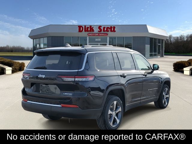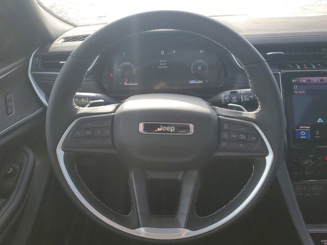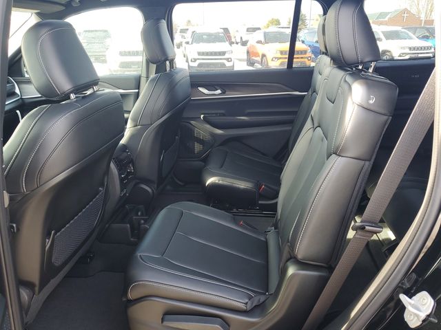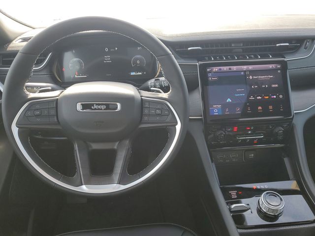 This Grand Cherokee L Limited is nicely equipped with Quick Order Package 22E, 3.45 Rear Axle Ratio, 3rd row seats: split-bench, 4-Wheel Disc Brakes, 6 Speakers, ABS brakes, Active Noise Control System, Air Conditioning, Alloy wheels, AM/FM radio: SiriusXM with 360L, Anti-whiplash front head restraints, Audio memory, Auto High-beam Headlights, Automatic temperature control, Brake assist, Bumpers: body-color, Capri Leatherette Seats, Compass, Delay-off headlights, Driver door bin, Driver vanity mirror, Dual front impact airbags, Dual front side impact airbags, Dual-Pane Panoramic Sunroof, Electronic Stability Control, Emergency communication system, Four wheel independent suspension, Front anti-roll bar, Front Bucket Seats, Front Center Armrest w/Storage, Front dual zone A/C, Front fog lights, Front reading lights, Fully automatic headlights, Garage door transmitter, Heated door mirrors, Heated front seats, Heated rear seats, Heated steering wheel, Illuminated entry, Interior Rear Facing Camera, Knee airbag, Low tire pressure warning, Manual Fold Seatbacks, Memory seat, Model Year Tracking, Navigation System, Normal Duty Suspension, Occupant sensing airbag, Outside temperature display, Overhead airbag, Overhead console, Panic alarm, ParkView Rear Back-Up Camera, Passenger door bin, Passenger vanity mirror, Power door mirrors, Power driver seat, Power Liftgate, Power passenger seat, Power steering, Power windows, Radio data system, Radio: Uconnect 5 Nav with 10.1" Display, Rear air conditioning, Rear anti-roll bar, Rear reading lights, Rear window defroster, Rear window wiper, Reclining 3rd row seat, Remote keyless entry, Security system, Speed control, Speed-Sensitive Wipers, Split folding rear seat, Spoiler, Steering wheel mounted audio controls, Tachometer, Telescoping steering wheel, Tilt steering wheel, Traction control, Trip computer, Turn signal indicator mirrors, Variably intermittent wipers, Voltmeter, Wheels: 18" x 8.0" Polished/Painted Aluminum, and Wheels: 20" x 8.5" Machined/Painted Aluminum.