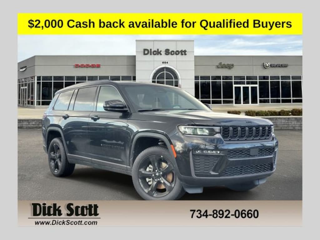 This Grand Cherokee L Limited is nicely equipped with Limited Altitude Package (Delete Limited Badge, Dual-Pane Panoramic Sunroof, Exterior Accents Dark Neutral Metallic, Interior Rear Facing Camera, and Wheels: 20" x 8.5" Gloss Black Painted Aluminum), Quick Order Package 2CE Limited, 10 Speakers, 3.70 Rear Axle Ratio, 3rd row seats: split-bench, 4-Wheel Disc Brakes, 4G LTE Wi-Fi Hot Spot, ABS brakes, Active Noise Control System, Air Conditioning, Alloy wheels, AM/FM radio: SiriusXM with 360L, Anti-whiplash front head restraints, Apple CarPlay, AppLink/Apple CarPlay and Android Auto, Audio memory, Auto High-beam Headlights, Automatic temperature control, Brake assist, Bumpers: body-color, Capri Leatherette Seats, Compass, Connectivity - US/Canada, Delay-off headlights, Disassociated Touchscreen Display, Driver door bin, Driver vanity mirror, Dual front impact airbags, Dual front side impact airbags, Electronic Stability Control, Emergency communication system, For Details, Visit DriveUconnect.com, Four wheel independent suspension, Front anti-roll bar, Front Bucket Seats, Front Center Armrest w/Storage, Front dual zone A/C, Front fog lights, Front reading lights, Fully automatic headlights, Garage door transmitter, Global Telematics Box Module (TBM), Gloss Black Exterior Mirrors, Google Android Auto, GPS Antenna Input, Heated door mirrors, Heated Exterior Mirrors, Heated front seats, Heated rear seats, Heated steering wheel, Illuminated entry, Integrated Center Stack Radio, Integrated Voice Command with Bluetooth, Knee airbag, Low tire pressure warning, Manual Fold Seatbacks, Manual Folding Exterior Mirrors, Memory seat, Navigation System, Normal Duty Suspension, Occupant sensing airbag, Outside temperature display, Overhead airbag, Overhead console, Panic alarm, ParkView Rear Back-Up Camera, Passenger door bin, Passenger vanity mirror, Power door mirrors, Power driver seat, Power Fold Seatbacks, Power Liftgate, Power passenger seat, Power steering, Power windows, Radio data system, Radio: Uconnect 5 Nav with 12.3" Display, Rear air conditioning, Rear anti-roll bar, Rear reading lights, Rear window defroster, Rear window wiper, Reclining 3rd row seat, Remote keyless entry, Security system, Speed control, Speed-Sensitive Wipers, Split folding rear seat, Spoiler, Steering wheel mounted audio controls, Tachometer, Telescoping steering wheel, Tilt steering wheel, Traction control, Trip computer, Turn signal indicator mirrors, USB Host Flip, Variably intermittent wipers, Voltmeter, and Wheels: 18" x 8.0" Polished/Painted Aluminum... Customers must qualify for FCA employee pricing and qualify for the following rebates, Price includes: $1500 - 2026 National Retail Bonus Cash . Exp. 04/30/2026 $500 - 2026 Great Lakes BC Bonus Cash . Exp. 04/30/2026