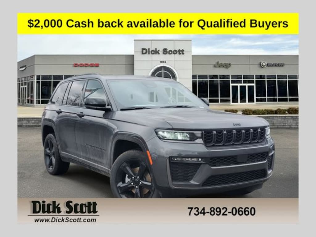 This Grand Cherokee Limited is nicely equipped with Limited Altitude Package (Delete Limited Badge, Dual-Pane Panoramic Sunroof, Exterior Accents Dark Neutral Metallic, and Wheels: 20" x 8.5" Gloss Black Painted Aluminum), Quick Order Package 2BE Limited, 4WD, 10 Speakers, 3.70 Rear Axle Ratio, 4-Wheel Disc Brakes, 4G LTE Wi-Fi Hot Spot, ABS brakes, Active Noise Control System, Air Conditioning, Alloy wheels, AM/FM radio: SiriusXM with 360L, Anti-whiplash front head restraints, Apple CarPlay, AppLink/Apple CarPlay and Android Auto, Audio memory, Auto High-beam Headlights, Automatic temperature control, Auxiliary Battery, Brake assist, Bumpers: body-color, Capri Leatherette Seats, Compass, Connectivity - US/Canada, Delay-off headlights, Disassociated Touchscreen Display, Driver door bin, Driver vanity mirror, Dual front impact airbags, Dual front side impact airbags, Electronic Stability Control, Emergency communication system, For Details, Visit DriveUconnect.com, Four wheel independent suspension, Front anti-roll bar, Front Bucket Seats, Front Center Armrest w/Storage, Front dual zone A/C, Front fog lights, Front reading lights, Fully automatic headlights, Garage door transmitter, Global Telematics Box Module (TBM), Gloss Black Exterior Mirrors, Google Android Auto, GPS Antenna Input, Heated door mirrors, Heated Exterior Mirrors, Heated front seats, Heated rear seats, Heated steering wheel, Illuminated entry, Integrated Center Stack Radio, Integrated Voice Command with Bluetooth, Knee airbag, Low tire pressure warning, Manual Folding Exterior Mirrors, Memory seat, Navigation System, Normal Duty Suspension, Occupant sensing airbag, Outside temperature display, Overhead airbag, Overhead console, Panic alarm, ParkView Rear Back-Up Camera, Passenger door bin, Passenger vanity mirror, Power door mirrors, Power driver seat, Power Liftgate, Power passenger seat, Power steering, Power windows, Radio data system, Radio: Uconnect 5 Nav with 12.3" Display, Rear anti-roll bar, Rear reading lights, Rear window defroster, Rear window wiper, Remote keyless entry, Security system, Speed control, Speed-Sensitive Wipers, Split folding rear seat, Spoiler, Steering wheel mounted audio controls, Tachometer, Telescoping steering wheel, Tilt steering wheel, Traction control, Trip computer, Turn signal indicator mirrors, USB Host Flip, Variably intermittent wipers, Voltmeter, and Wheels: 18" x 8.0" Polished/Painted Aluminum...