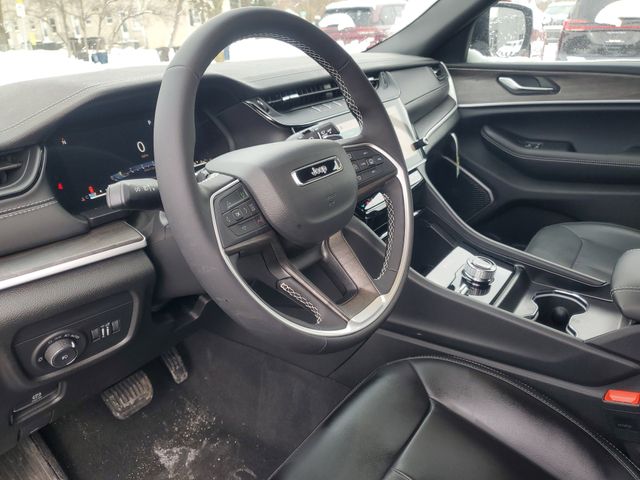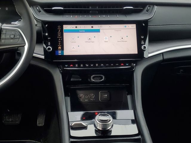 This Grand Cherokee Limited is nicely equipped with Limited Altitude Package (Delete Limited Badge, Dual-Pane Panoramic Sunroof, Exterior Accents Dark Neutral Metallic, and Wheels: 20" x 8.5" Gloss Black Painted Aluminum), Quick Order Package 2CE Limited, 4WD, 10 Speakers, 3.70 Rear Axle Ratio, 4-Wheel Disc Brakes, 4G LTE Wi-Fi Hot Spot, ABS brakes, Active Noise Control System, Air Conditioning, Alloy wheels, AM/FM radio: SiriusXM with 360L, Anti-whiplash front head restraints, Apple CarPlay, AppLink/Apple CarPlay and Android Auto, Audio memory, Auto High-beam Headlights, Automatic temperature control, Auxiliary Battery, Brake assist, Bumpers: body-color, Capri Leatherette Seats, Compass, Connectivity - US/Canada, Delay-off headlights, Disassociated Touchscreen Display, Driver door bin, Driver vanity mirror, Dual front impact airbags, Dual front side impact airbags, Electronic Stability Control, Emergency communication system, For Details, Visit DriveUconnect.com, Four wheel independent suspension, Front anti-roll bar, Front Bucket Seats, Front Center Armrest w/Storage, Front dual zone A/C, Front fog lights, Front reading lights, Fully automatic headlights, Garage door transmitter, Global Telematics Box Module (TBM), Gloss Black Exterior Mirrors, Google Android Auto, GPS Antenna Input, Heated door mirrors, Heated Exterior Mirrors, Heated front seats, Heated rear seats, Heated steering wheel, Illuminated entry, Integrated Center Stack Radio, Integrated Voice Command with Bluetooth, Knee airbag, Low tire pressure warning, Manual Folding Exterior Mirrors, Memory seat, Navigation System, Normal Duty Suspension, Occupant sensing airbag, Outside temperature display, Overhead airbag, Overhead console, Panic alarm, ParkView Rear Back-Up Camera, Passenger door bin, Passenger vanity mirror, Power door mirrors, Power driver seat, Power Liftgate, Power passenger seat, Power steering, Power windows, Radio data system, Radio: Uconnect 5 Nav with 12.3" Display, Rear anti-roll bar, Rear reading lights, Rear window defroster, Rear window wiper, Remote keyless entry, Security system, Speed control, Speed-Sensitive Wipers, Split folding rear seat, Spoiler, Steering wheel mounted audio controls, Tachometer, Telescoping steering wheel, Tilt steering wheel, Traction control, Trip computer, Turn signal indicator mirrors, USB Host Flip, Variably intermittent wipers, Voltmeter, and Wheels: 18" x 8.0" Polished/Painted Aluminum...