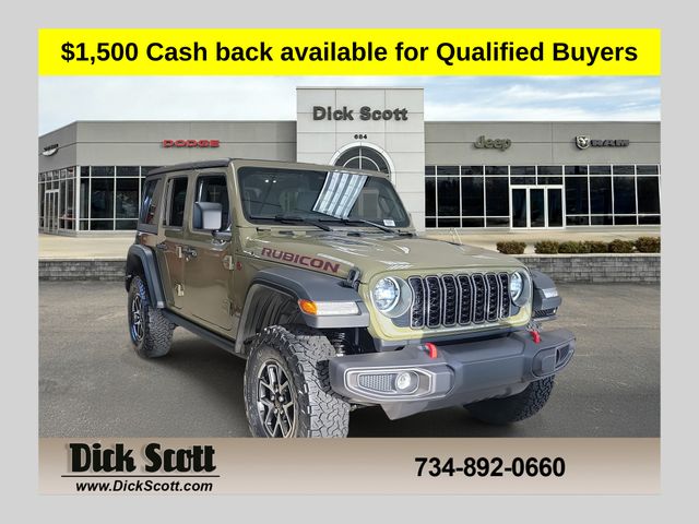This Wrangler Rubicon is nicely equipped with Convenience Group (Heated Front Seats, Heated Steering Wheel, and Universal Garage Door Opener), Quick Order Package 22R Rubicon, Safety Group (Auto High Beam Headlamp Control and ParkSense Rear Park Assist System), 12.3" Touchscreen Display, 4-Wheel Disc Brakes, 4.10 Rear Axle Ratio, 4G LTE Wi-Fi Hot Spot, 8 Speakers, ABS brakes, Air Conditioning, Alloy wheels, AM/FM radio: SiriusXM with 360L, Apple CarPlay, Apple CarPlay/Android Auto, Automatic temperature control, Aux Battery, Black 3-Piece Hard Top, Brake assist, Cloth Low-Back Bucket Seats, Compass, Connectivity - US/Canada, Delay-off headlights, Driver door bin, Driver vanity mirror, Dual front impact airbags, Dual front side impact airbags, Electronic Stability Control, Emergency communication system: Jeep Connect, For More Info, Call 800-643-2112, Freedom Panel Storage Bag, Front anti-roll bar, Front Bucket Seats, Front Center Armrest w/Storage, Front dual zone A/C, Front fog lights, Front reading lights, Fully automatic headlights, Google Android Auto, Heated door mirrors, Illuminated entry, Integrated Center Stack Radio, Integrated roll-over protection, Low tire pressure warning, MOPAR All-Weather Floor Mats, Occupant sensing airbag, Outside temperature display, Overhead airbag, Panic alarm, ParkView Rear Back-Up Camera, Passenger door bin, Passenger vanity mirror, Performance Suspension, Power door mirrors, Power steering, Power windows, Radio data system, Rear anti-roll bar, Rear reading lights, Rear Window Defroster, Rear Window Wiper/Washer, Remote keyless entry, Remote Start System, Security system, SiriusXM Radio Service, Speed control, Split folding rear seat, Steering wheel mounted audio controls, Stop-Start Dual Battery System, Tachometer, Telescoping steering wheel, Tilt steering wheel, Traction control, Trip computer, Variably intermittent wipers, Voltmeter, and Wheels: 17" x 7.5" Machined/Painted Black... Customers must qualify for FCA employee pricing and qualify for the following rebates, Price includes: $1500 - 2026 National Stellantis Loyalty Retail Bonus Cash . Exp. 02/02/2026