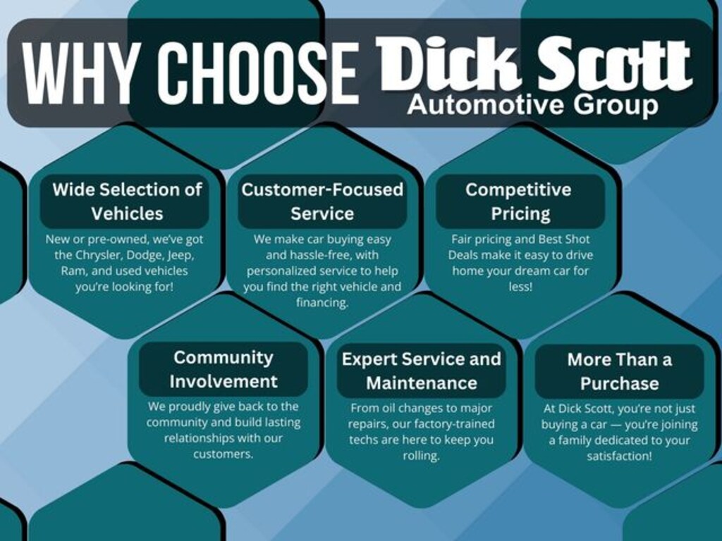Get your best shot at Dick Scott Motor Mall! Located in Fowlerville at exit 129 off I-96. We are here 9am -8pm Monday & Thursday , 9am -6pm Tuesday, Wednesday , & Friday ,10am - 3pm Saturday and always open online at www.dickscottmotormall.com.vehicle is not available for finale sale until the title is in the possession of the dealer. Customers must qualify for FCA employee pricing and qualify for the following rebates, Price includes: $4000 - 2026 National Bonus Cash